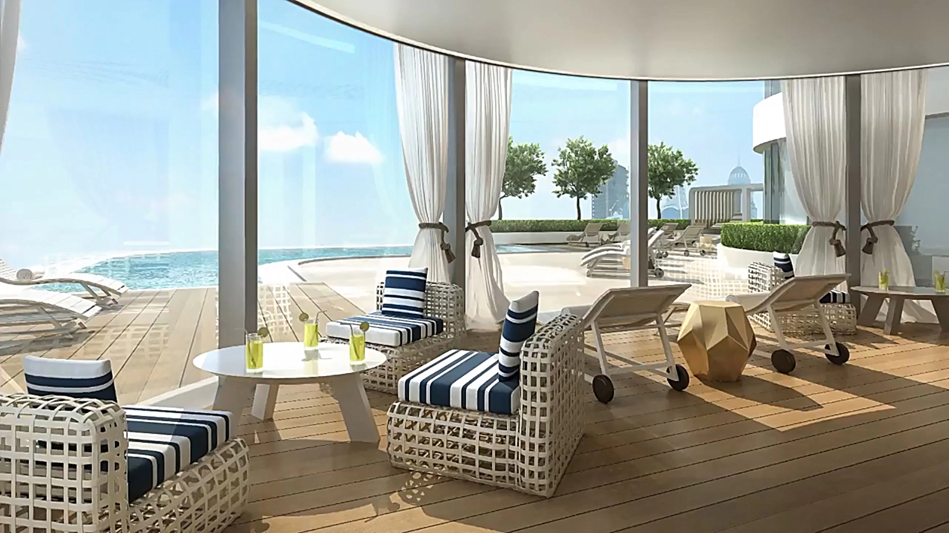 The skyscraper boasts the world's highest swimming pool on the 76th floor and a swimming pool on the 46th floor — both swimming pools feature an open-air lounge and a shaded indoor area. At the top of the tower is an observatory offering a bird's-eye view of the city.