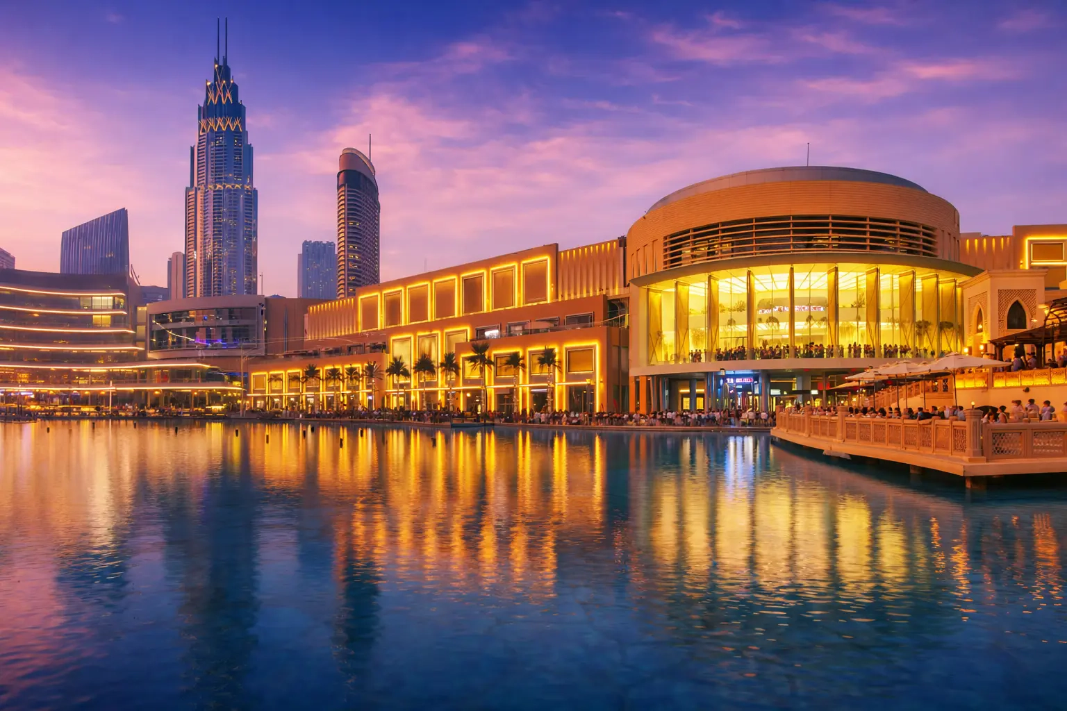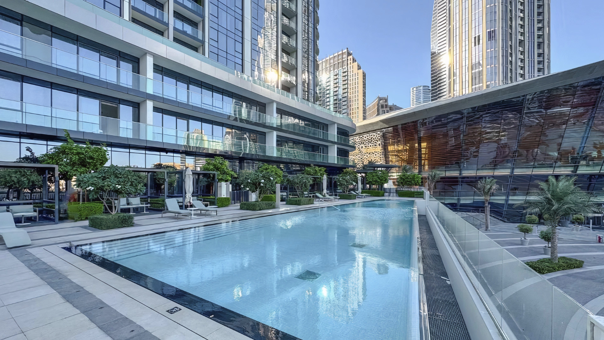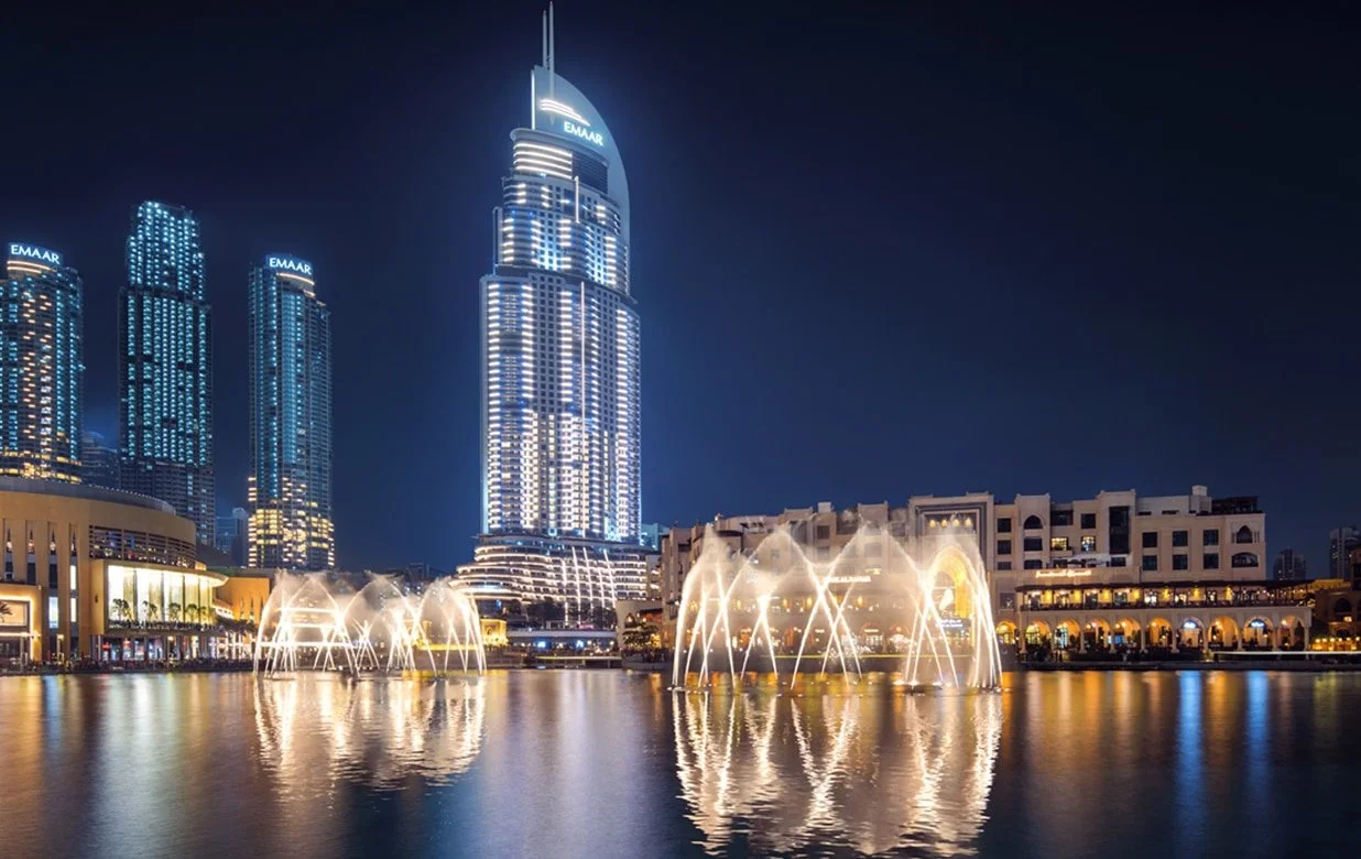 The world's tallest building, Burj Khalifa, is located in the Downtown district. The famous Dubai Fountain, a dancing fountain show, takes place at the foot of the skyscraper. The Dubai Mall, with over 1,200 stores, is just a two-minute walk away. A 10-minute drive takes you to Jumeirah Beach. Promenades along the main landmarks and the main highway, Sheikh Zayed Road, lead all the way to Downtown Dubai.