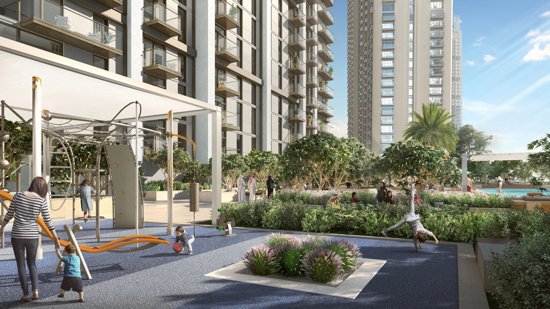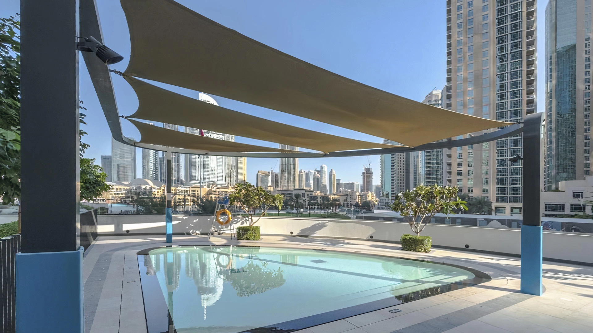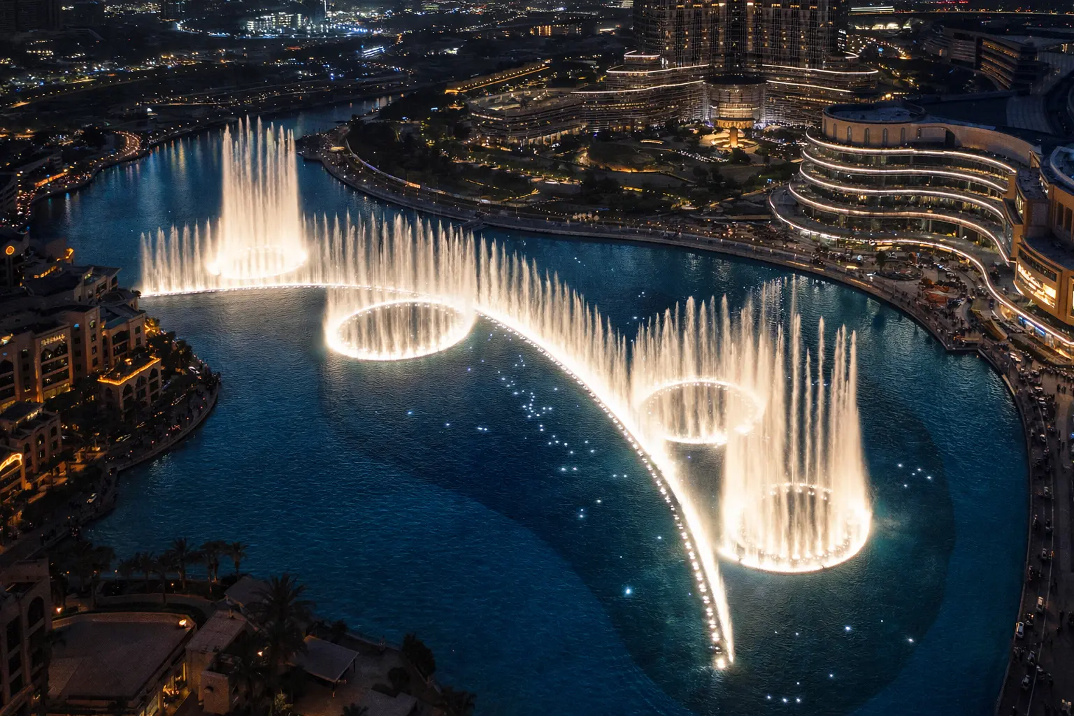The world's tallest building, Burj Khalifa, is located in the Downtown district. The famous Dubai Fountain, a dancing fountain show, takes place at the foot of the skyscraper. The Dubai Mall, with over 1,200 stores, is just a two-minute walk away. A 10-minute drive takes you to Jumeirah Beach. Promenades along the main landmarks and the main highway, Sheikh Zayed Road, lead all the way to Downtown Dubai.