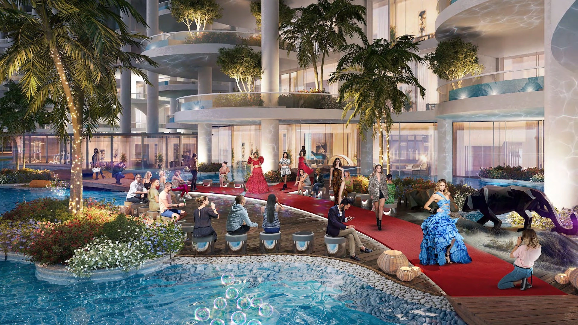 Cavalli Couture features branded residences inspired by the iconic Roberto Cavalli aesthetic. Interiors and common areas reflect the brand’s signature style, incorporating premium materials and bold design elements.