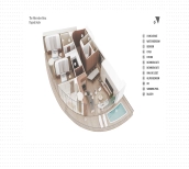 The developer designed 150 apartments within Mercedes-Benz Places. You can choose apartments with 2 and 3 bedrooms. Penthouses with 4 and 5 bedrooms, duplexes, and triplex residences are located on the top floors.