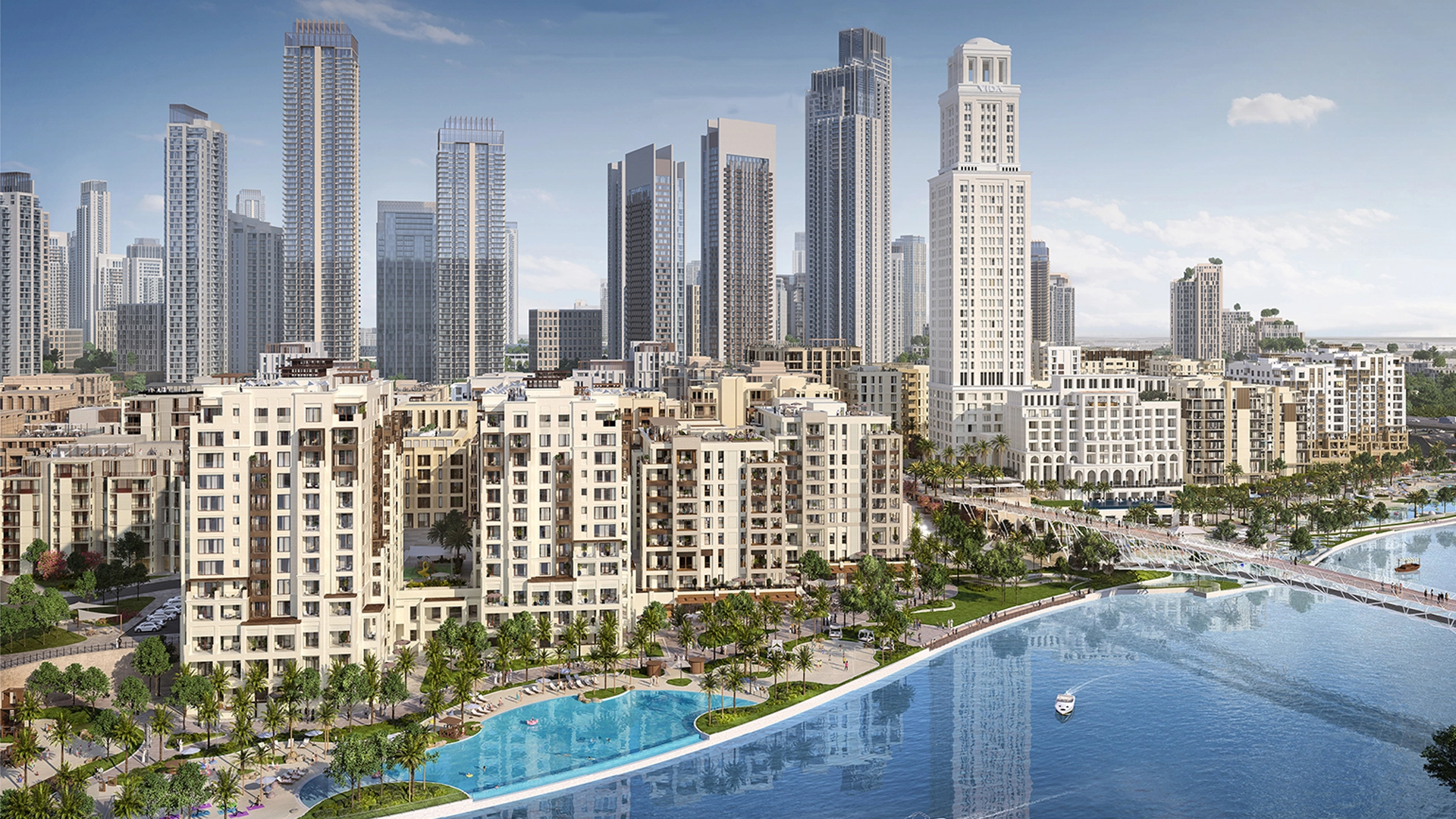 Rosewater offers 1, 2 and 3-bedroom waterfront apartments with contemporary layouts, private balconies and views of Creek Beach, landscaped courtyards and Dubai Creek.