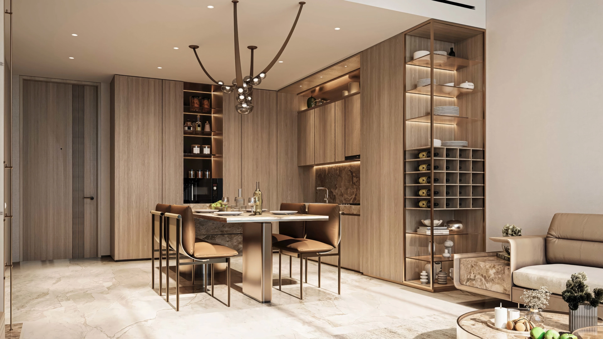 The Sea Cliff project is located on the man-made Dubai Islands. Extended promenades lined with bars and restaurants create a resort-style atmosphere: the aromas of seafood and freshly baked goods mingle with a gentle breeze, the gentle lapping of waves accompanies conversations, and evening lights reflect off the water. Convenient access to the Infinity Bridge provides quick connections to the mainland and key city locations.