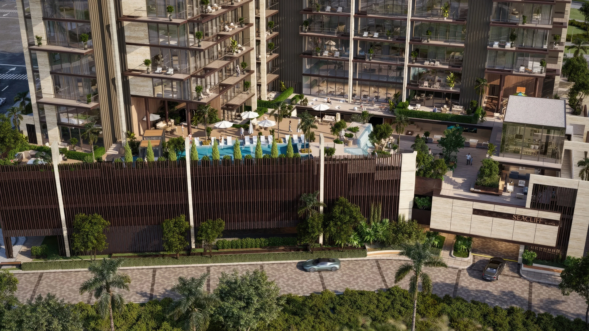 The building comprises 170 residences, including apartments with 1–3 bedrooms. For larger families, 4-bedroom duplexes with private swimming pools on the balconies are available.