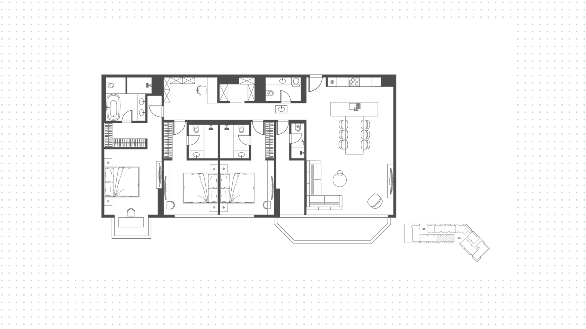 The project offers a variety of unit options, including 1, 2 and 3 bedroom apartments, with some two-bedroom units including a maid’s room. The layouts are open-plan, with the living and dining areas flowing into each other, and floor-to-ceiling windows opening onto balconies that face either the Cultural District or the landscaped podium. The developers offer two interior finish themes—one light, one dark—so buyers can pick the one that suits their taste.