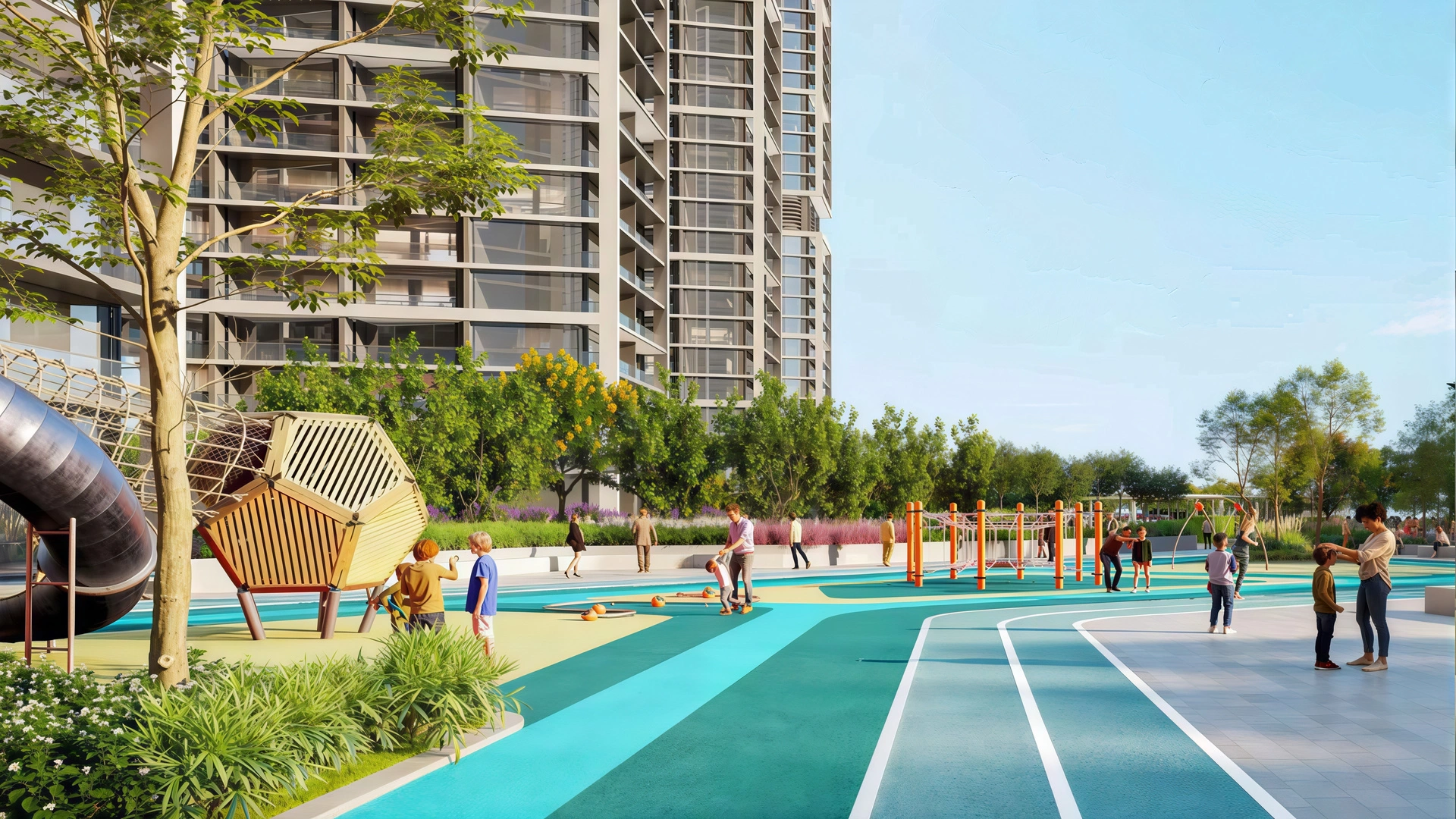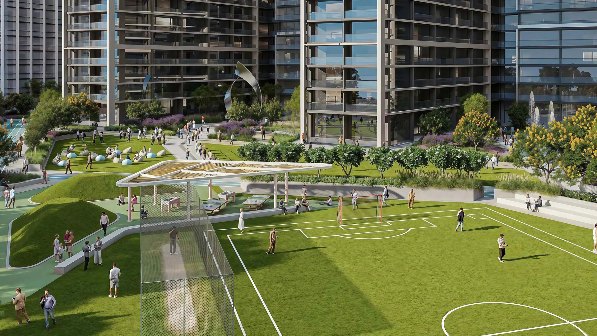 Residents have access to swimming pools, fitness and wellness areas, landscaped parks, retail spaces and recreational areas.