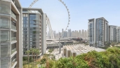 Apartments feature views of the Arabian Gulf, Dubai Marina skyline, JBR beachfront, and the iconic Ain Dubai observation wheel, depending on unit orientation and floor level.