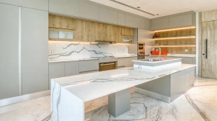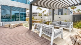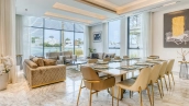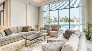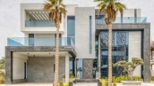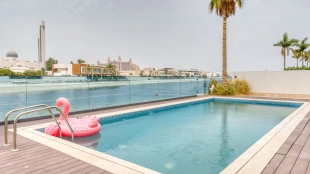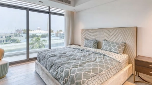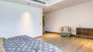 This 6-bedroom villa is 8,478 square feet. Each bedroom is renovated with quality materials. The home has 9 bathrooms equipped with premium fixtures. The kitchen is equipped with marble countertops and modern appliances. Within the villa you will find a pool with stunning views and direct access to Palm Jumeirah Beach.