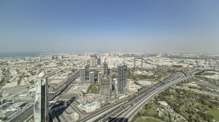 - panoramic views of Dubai Frame and the sea