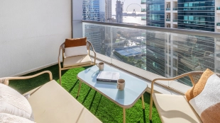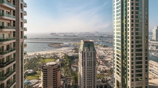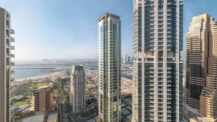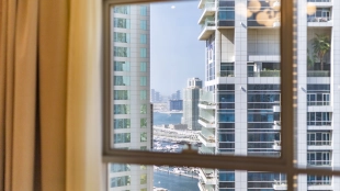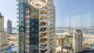 On one of the top floors of Skyview Tower, in the heart of the Dubai Marina district, is an apartment with breathtaking views of the sea and marina. A spacious balcony opens up to the water and skyline, flooding the interior with light and air. Inside, the layout is thoughtfully designed with fitted closets, fully equipped kitchen, separate pantry and large walk-in closet.