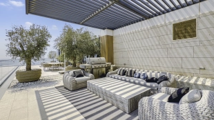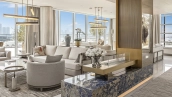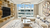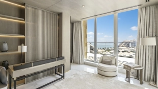 Mornings here begin with soft light flooding the spacious bedrooms. As you open the doors to the wide terrace, you breathe in the fresh sea air and watch the first rays of the sun hit Palm Jumeirah Island and reflect in the water. By day, the space is infused with the energy of the city, with the vibrancy of Dubai Marina, the grandeur of the Atlantis complex and the recognizable silhouettes of the Burj Al Arab Hotel and Ain Dubai Ferris wheel visible in the distance. The 360° terraces become a natural extension of the interior, where every glance reveals new panoramas. By evening, returning home, you find a quiet corner by your own private outdoor Jacuzzi. The warm water, the twinkling lights of Bluewaters Island and the endless horizon of the sea create an atmosphere of total privacy. Late at night, as the city dips into the glow of the lights, your suite remains a quiet sanctuary. Everything from four spacious bedrooms to a separate staff room and dedicated VIP parking has been thoughtfully designed.