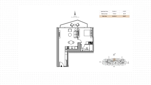 1-bedroom apartment, 64 m²