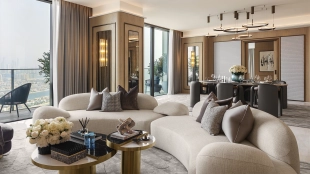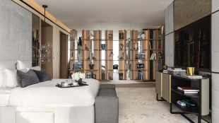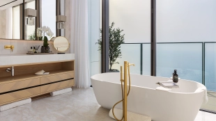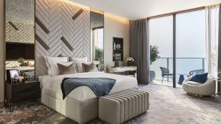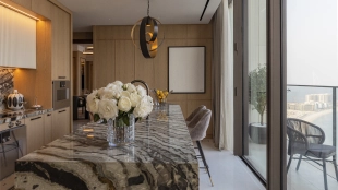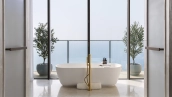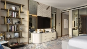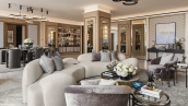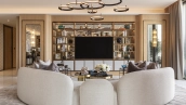 Spacious 4-bedroom apartment on the 34th floor of The Royal Atlantis. For your comfort there is a study, dressing room and 7 balconies with stunning views of Palm Jumeirah Island and the sea. The design scheme is accented with warm beige and brown tones with golden shimmers to create a cozy atmosphere.