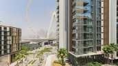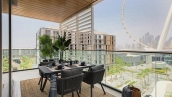 Apartments feature views of the Arabian Gulf, Dubai Marina skyline, JBR beachfront, and the iconic Ain Dubai observation wheel, depending on unit orientation and floor level.