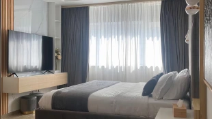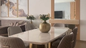 2 bedroom apartments in Mayan complex on Yas Island. The interiors of the rooms in light colors create a relaxing atmosphere. The residence is equipped with all the necessary furniture that makes you feel at home from the first minutes. The walls are decorated with modern paintings with abstractions. The kitchen-living room is fitted with a stylish lacquer-coated set and a dining area for 6 persons. For your comfort there is a maid's room. If you want to get some fresh air, go out to the spacious balcony, where you can spend evenings with a glass of cool cocktail, admiring the azure water.