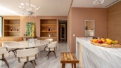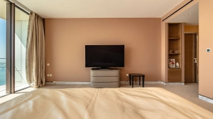A 2-bedroom apartment in The Royal Atlantis Residences at The Palm Crescent. The apartment has been renovated with premium materials, the finishing harmoniously combines the textures of marble and wood. Warm peach and milk colors prevail in the interior design. The apartments are fully furnished and equipped with all necessary appliances for your comfortable stay.