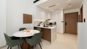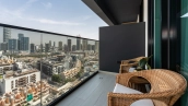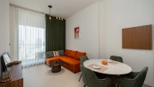 The apartments are equipped with all the necessary furniture and appliances required for your comfortable stay. Panoramic windows fill the rooms with natural light, the balcony overlooks the landscaped territory of the complex.