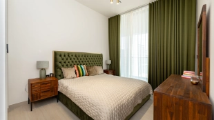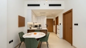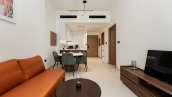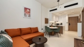1 bedroom apartment on the 12th floor of Binghatti Onyx residential complex in JVC neighborhood. Finished in a modern style complemented by a noble texture of wood, the interior design uses natural shades of beige, terracotta and khaki.