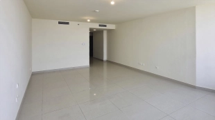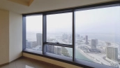 This 2-bedroom apartment on the 61st floor of Sun Tower offers breathtaking views of the mangrove reserve surrounded by the azure waters of the bay. The light color palette of the finishes creates a cozy atmosphere. The floor has glossy tiles that reflect the glare of the sunlight. Against the background of the walls of a milky shade contrast doors, cabinets and kitchen set under dark wood. Panoramic windows fill the rooms with natural light and warmth. Here you can organize the space to your taste, using furniture and decor of any style and color. The layout includes kitchen-living room, master bedroom with dressing room and bathroom, second bedroom, guest bathroom and hall.