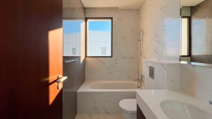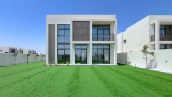 A 4 bedroom duplex villa in the quiet community of Jubail Island. The interior is contemporary in style, combining wood and stone textures. Panoramic windows in contrasting black frames flood the rooms with natural light. The kitchen with a practical island is united with the living room and is equipped with a set with built-in appliances. On the second floor is planned family room - here you can chat with loved ones over a cup of coffee, play your favorite board game or watch a movie. In addition to the 4 bedrooms there is a staff room. On a large plot with a green lawn you can organize a recreation area and admire beautiful sunsets.