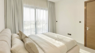 A 2 bedroom apartment on the 3rd floor of The Crest residential complex in Sobha Hartland neighborhood. The bright and stylish interior is filled with sunlight and warmth thanks to panoramic windows that offer picturesque views of Dubai's skyscrapers. The living room and master bedroom are furnished, while the second bedroom can be customized. The kitchen area is united with the living room and is equipped with all necessary appliances - it is easy to feel at home here from the first minutes. On the balcony you can spend warm evenings cozy.