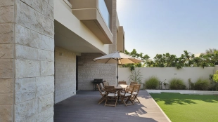 A spacious 5 bedroom villa in the Hidd Al Saadiyat community, where every day can start with a walk along the coast and enjoying the island's luxurious flora. Residents of the villa will be able to walk to the beach in just a couple of minutes. A garden with palm trees and flowering plants has been laid out on a fenced landscaped plot. Here you can start your day with a leisurely breakfast on the terrace or meditate on the green meadow. In front of the house organized a covered parking for 2 cars.