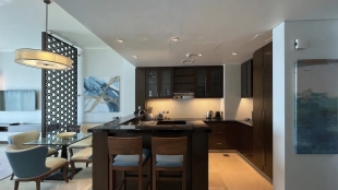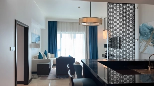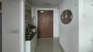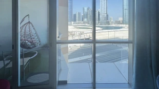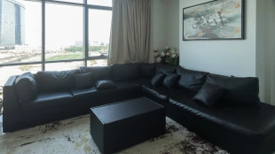 This three-bedroom apartment is located on the fifty-eighth floor of one of the skyscrapers of The Gate Towers & The Arc. The light-colored finishes allow you to decorate the interior in almost any style.