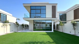 Spacious four-bedroom villa in the premium Yas Acres community on Yas Island. The duplex residence is located on a large plot, landscaped with landscaping - soft green lawns can be used to organize an outdoor seating area.