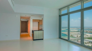 Three bedroom apartment on the eleventh floor of the Meera complex on Al Reem Island. The light colored finishes create a versatile base for interior design to suit your tastes.
