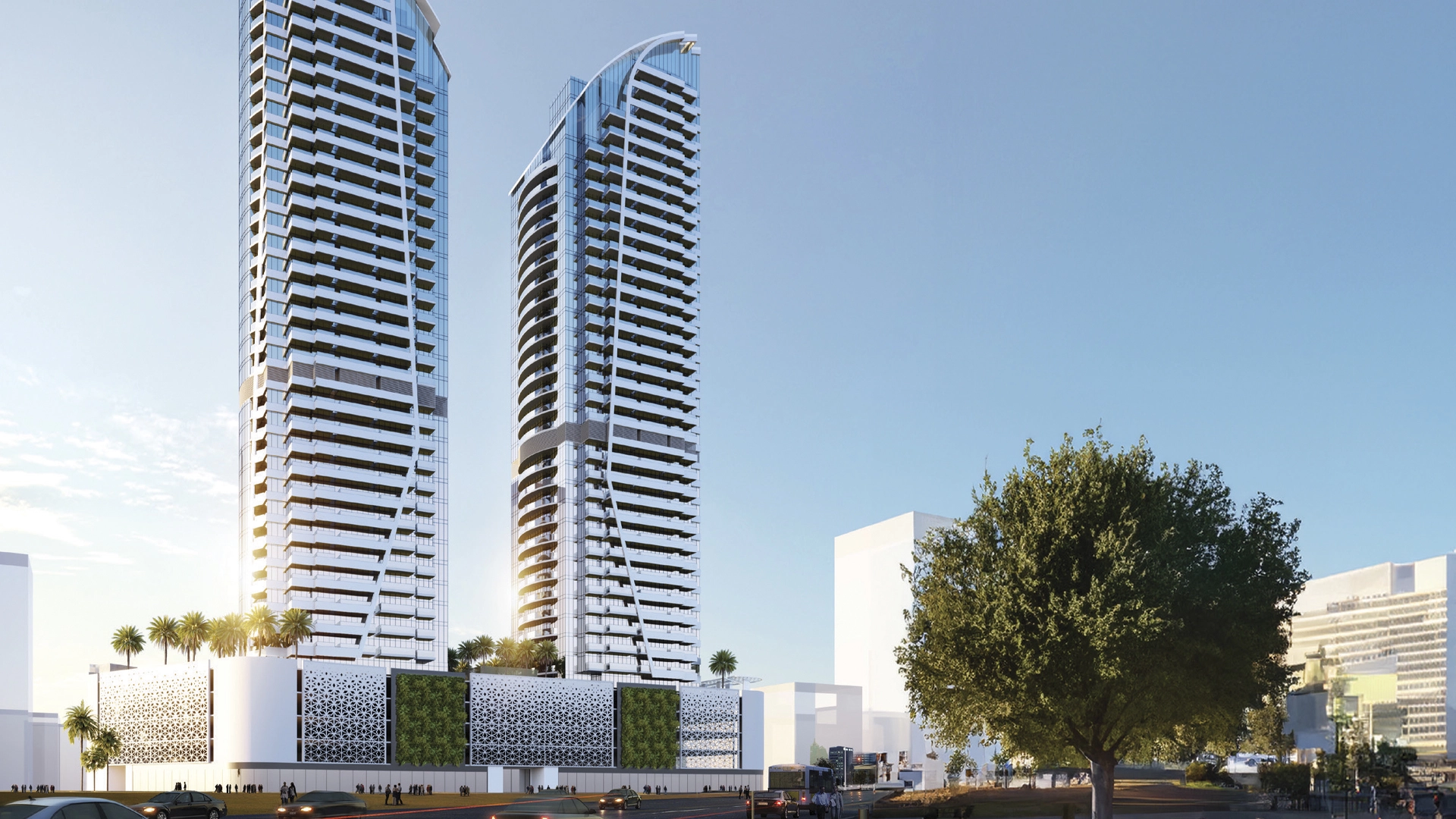 Башни расположены в DIFC, динамичном финансовом районе Дубая. Всего в нескольких шагах находятся Gate Avenue, выставочные залы, рестораны и ночные бары. Центр Дубая находится в 7 минутах езды на машине, пляжи Джумейры и аэропорт Дубая – в 17 минутах, а парк Забиль и заповедник Рас-эль-Хор – в 12 минутах.