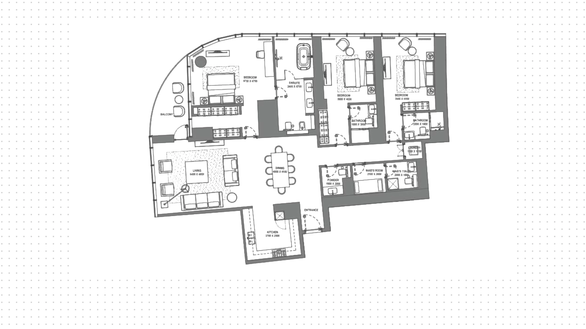 В проекте представлены просторные апартаменты с 1, 2 и 3 спальнями, отличающиеся продуманными планировками и панорамным остеклением.